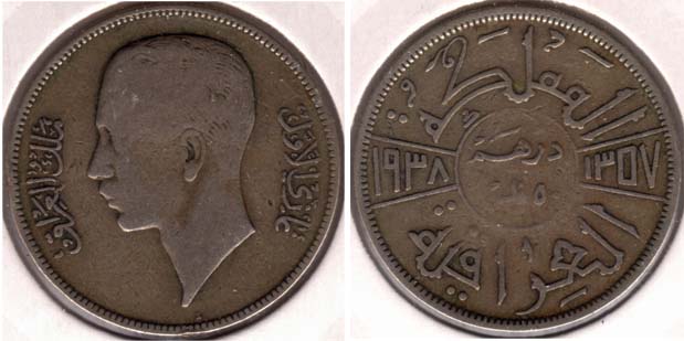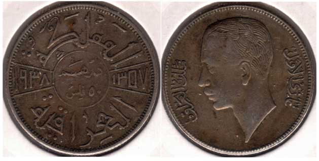| 20 Fils (silver) | 1938-I | 106 | Ghazi I | F+ | 2.25sold |