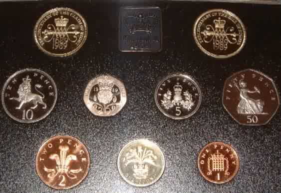 1983 Proof Set (currency) £1 Royal Coat of Arms for Great Britain 1st year of issue 50p,20p,10p,5p,2p,1p,½p. Base case & COA some light toning |