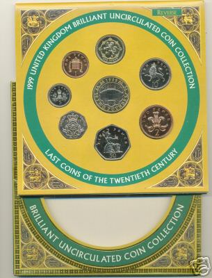 1999 Mint Set (Uncirculated) £2 Bi-Metal Rugby World Cup Tournament,£1 Scottish Lion,50p,20p,10p,5p,2p,1p In official issue foldout flat pack (Blister Pack) |